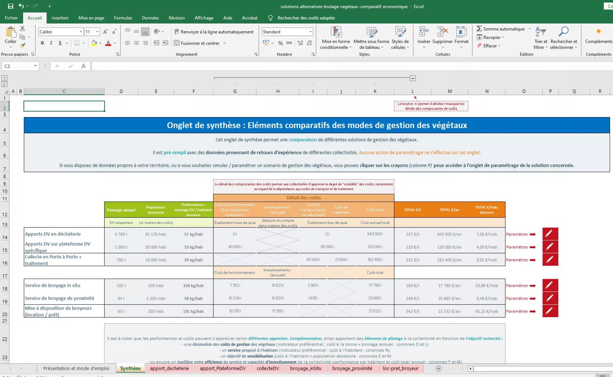 - Prévention, gestion de proximité, gestion centralisée : en fonction des données que vous renseignez, le tableur vous oriente vers les options les plus pertinentes.