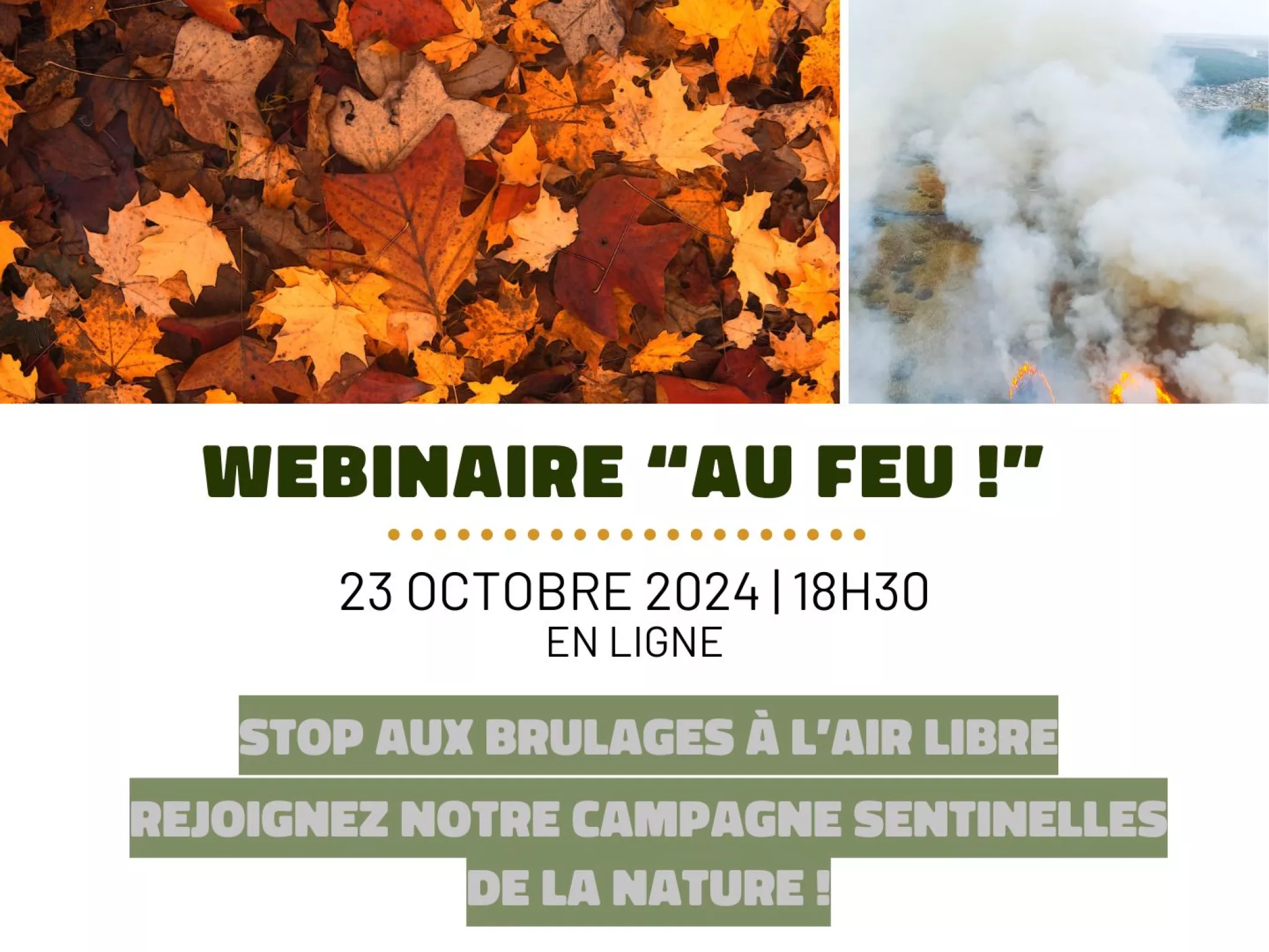 Nous vous donnons RDV en ligne le mercredi 23/10 de 18h30 à 19h30 pour un webinaire consacrée à la qualité de l’air, aux alternatives aux brûlages des déchets verts et au réseau Sentinelles de la nature !