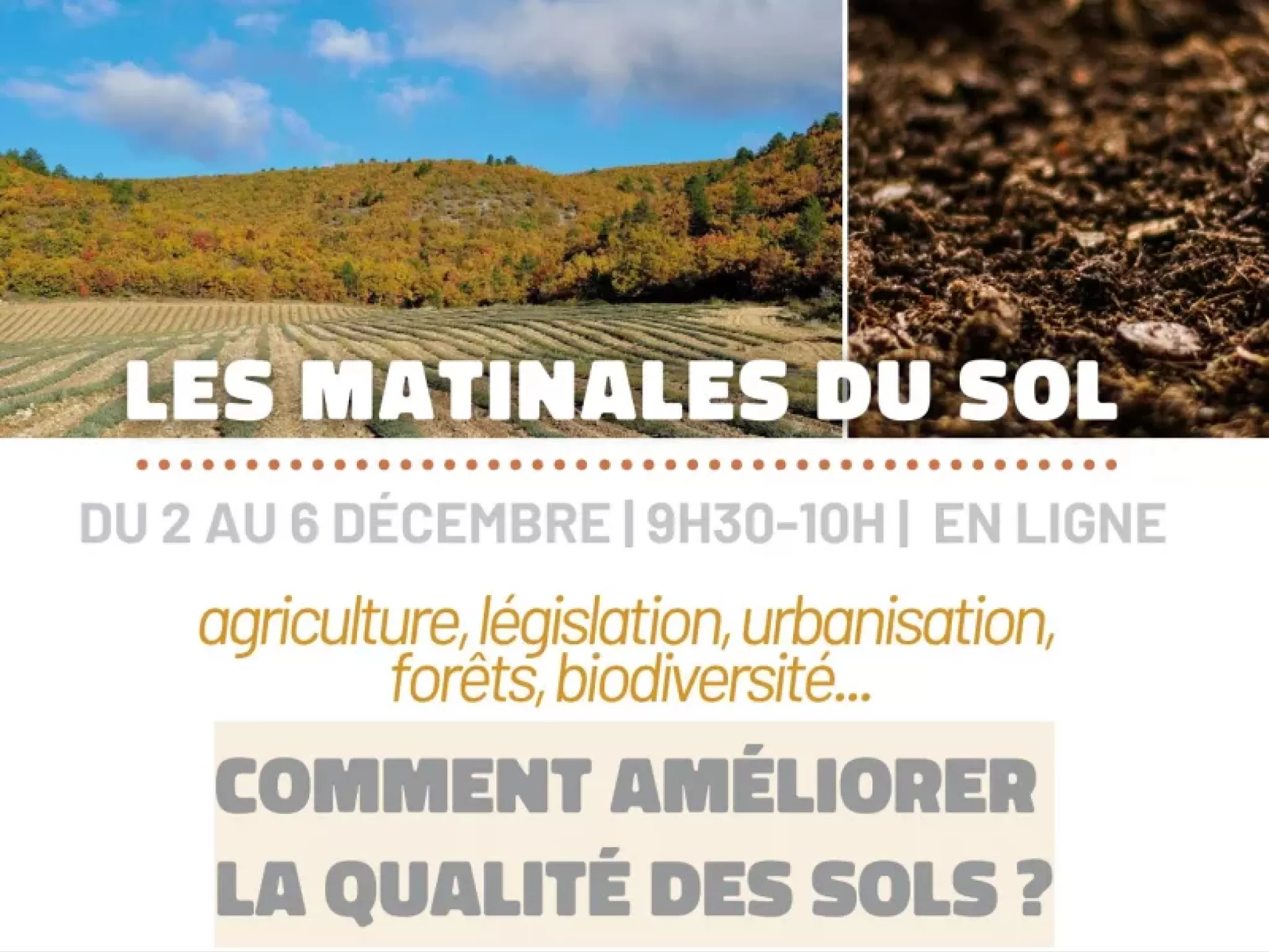 Les Matinales du Sol font résonance à la Journée Mondiale du Sol le 5 décembre prochain. Du lundi au vendredi, nous vous proposons de découvrir les plaidoyers construits par nos expert·es pour améliorer la protection et la prise en compte du sol autour de 5 thématiques centrales :